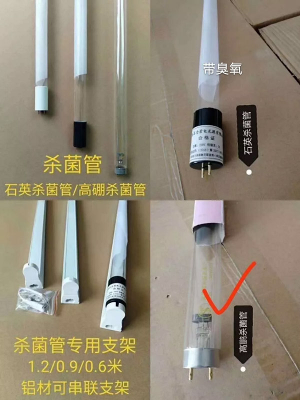 但市面上目前分為兩種消毒燈,一種是高硼管,一種是石英管,如下圖所示,高硼管紫外線殺菌燈的結構 (UV燈)實際上是屬于一種低壓汞燈,和普通日光燈一樣,利用低壓汞蒸汽(<10-2Pa)被激發后發射紫外線。不同的是日光燈的燈管采用的是普通玻璃,253.7nm紫外線不能透出來,只能被燈管內壁的熒光粉吸收后激發出可見光。如果改變熒光粉的成分和比例,它就可以發出我們通常所見的不同顏色的光。
